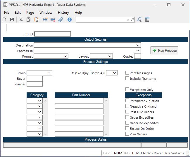 Group Enter the planning group for which you wish to run this MPS report.