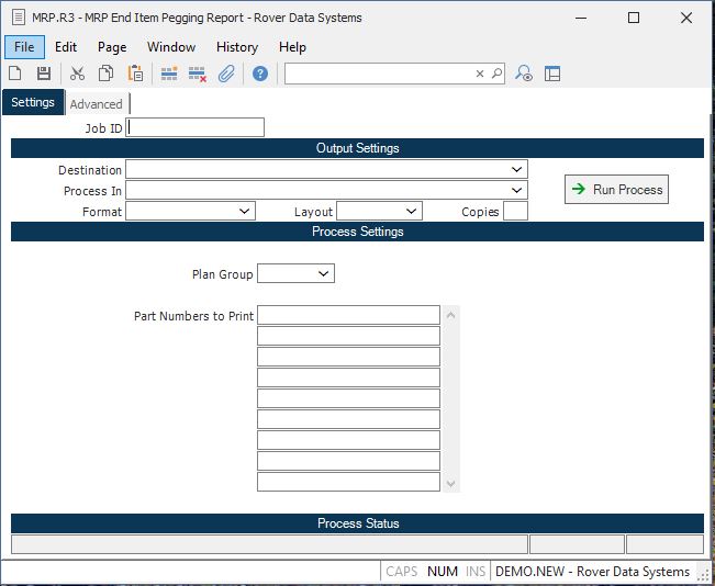Run Process Click on the button to run the process. This performs the save function which may also be activated by clicking the save button in the tool bar or pressing the F9 key or Ctrl+S.