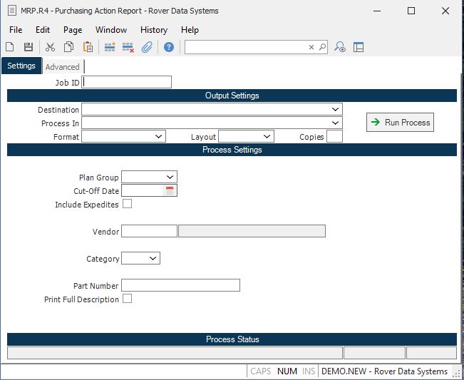 Cutoff Date Enter the end date of the MRP period to be used as the cutoff period for the report. Only activity required through the end of the period will be included in the report. If the date you enter is not a period end date, it will be changed to the next period end date after the date you entered.