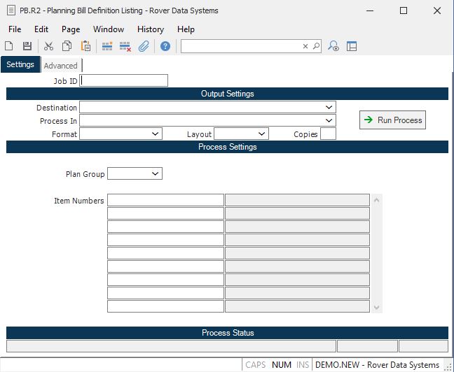 Item Numbers You may limit the listing to include only those item numbers that you specify in this field. If you leave this field blank then all planning bills will be included.