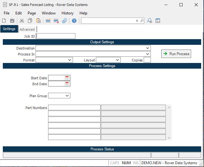 Part Numbers You may limit the listing to include only those part numbers that you specify in this field. If you leave this field blank then all forecast parts with a forecast within the specified start and end dates will be included.