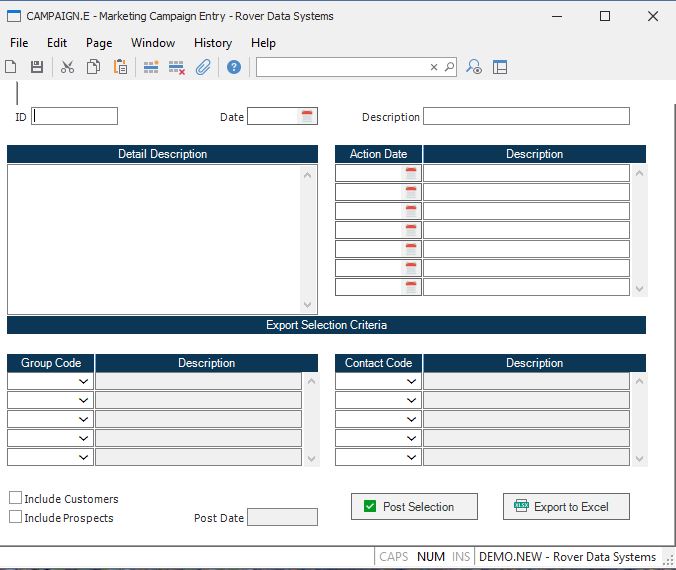 Marketing Campaign Entry (CAMPAIGN.E)