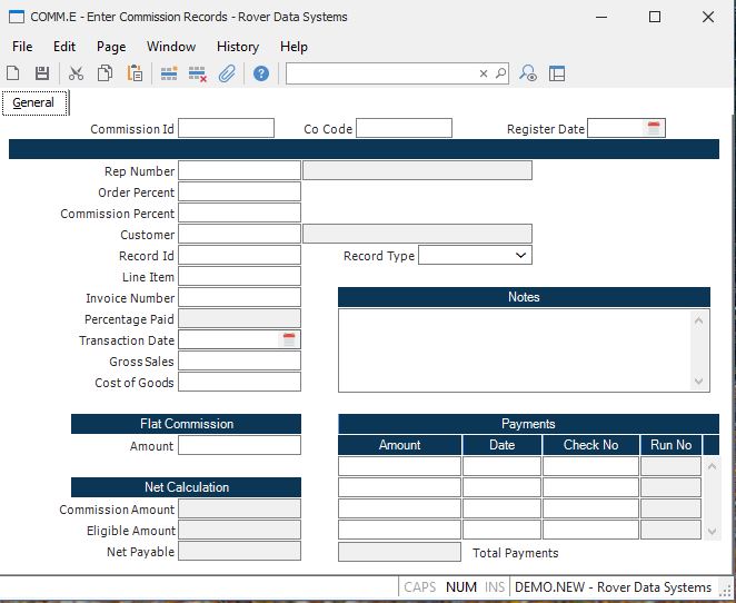 Enter Commission Records (COMM.E)