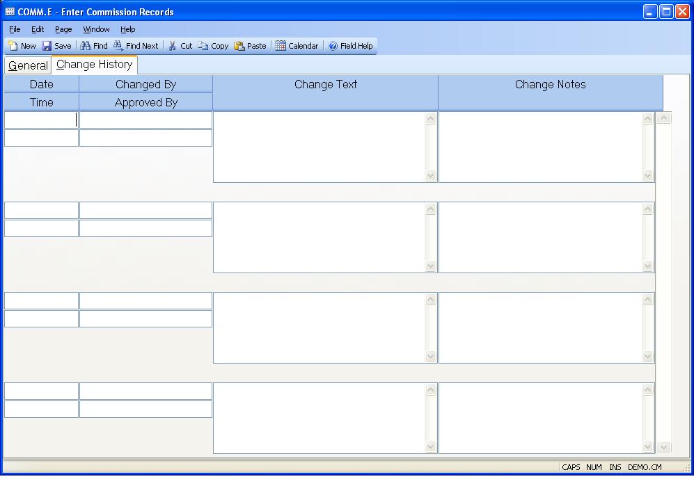 Change Text This field contains a listing of the changes that were made on the associated date. Changes cannot be made to this field.