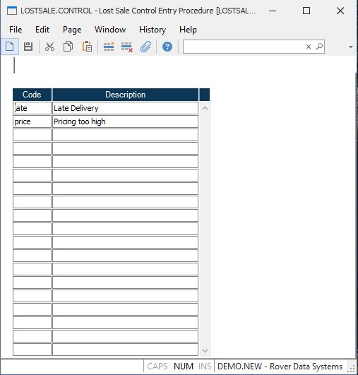 Reason Code Enter up to a 6 digit code which will be used as the identifier for the associated lost sale. Lost sales can be tracked via LOSTSALE.E .