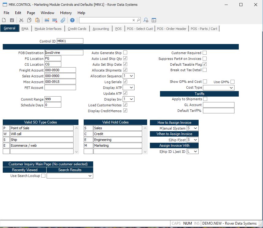 Marketing Module Controls and Defaults (MRK.CONTROL)