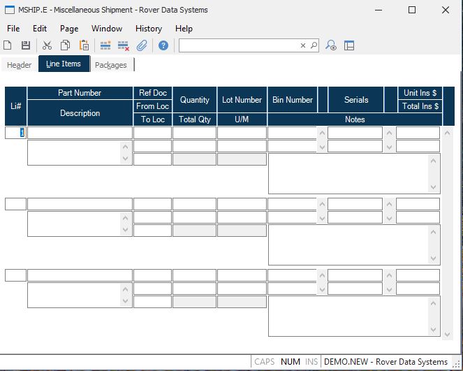 Qty Enter the quantity to be shipped. If this item is either lot or bin controlled, enter the quantity associated with each lot or bin. If it is neither then enter the entire ship quantity for this line.
