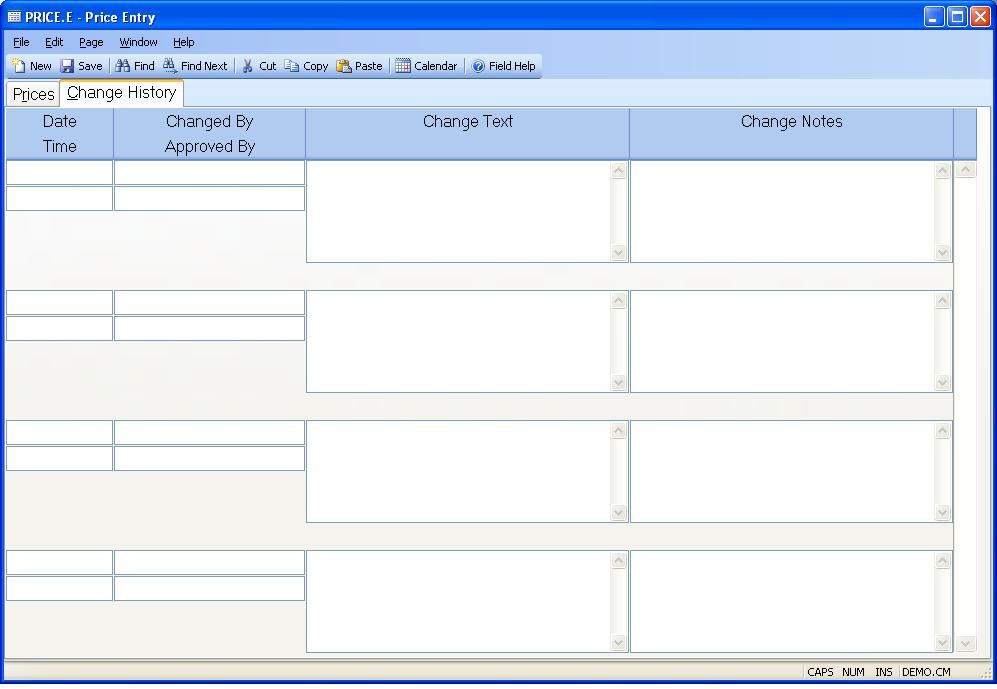 Change Date The date the PRICE record was changed. This is only stored if one of two conditions are met: 1) The parameters are set in CHANGE.CONTROL and a change was made that met the criteria for storing change history or 2) Change notes were entered by the user. This field is system controlled.