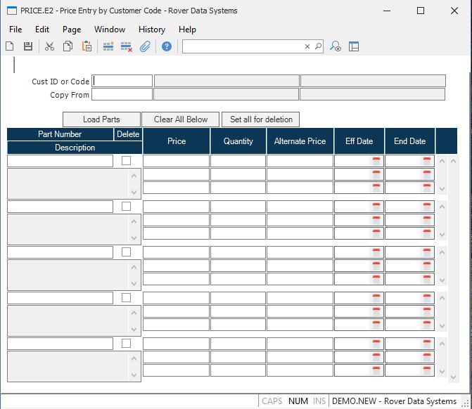 Load The field can be used to load the pricing information from another customer number or pricing code onto this screen.