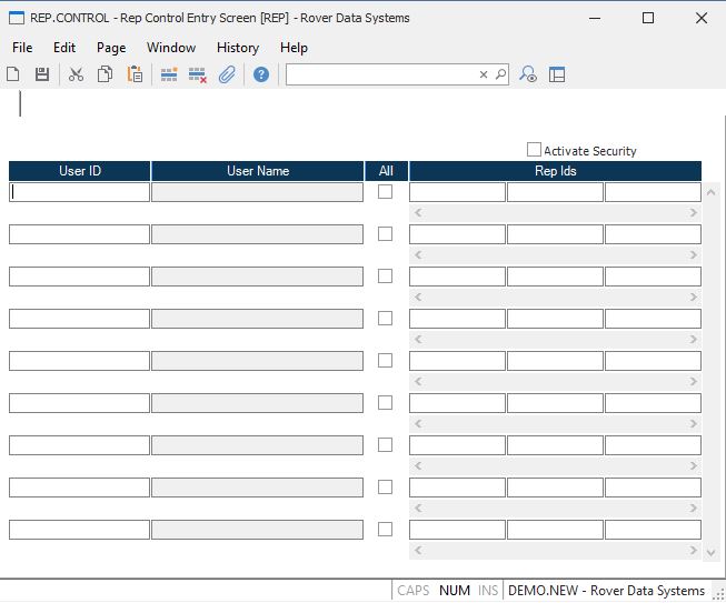 Field3 Enter the rep id(s) that this user can view on the rep reports defined in the procedure help. If this users should be able to view data on all reps,check the ALL option instead of entering the rep id(s) in this field. If the ALL option is selected, the rep ids entered into this field will be deleted when REP.CONTROL is saved.
