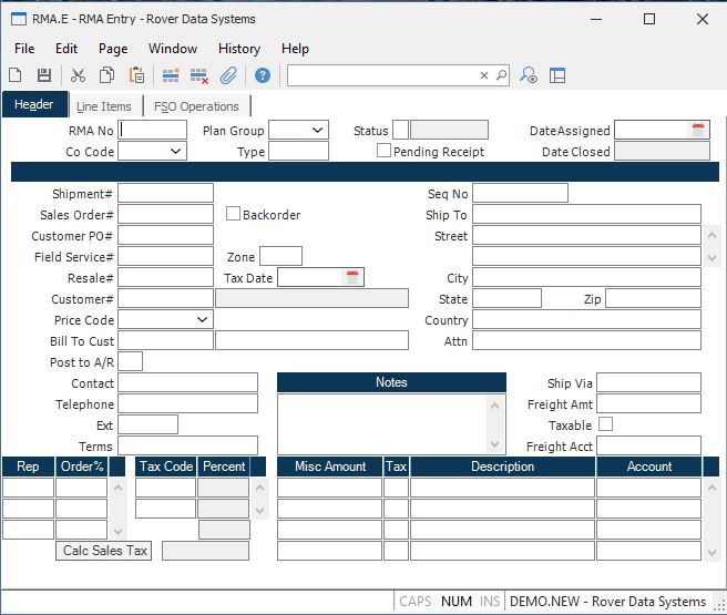 FSO If this RMA is for a field service order, enter the FSO# in this field. Doing so will cause the data from the field service order to be loaded into the RMA record where it can then be changed to reflect what portion of the FSO is being returned or credited.