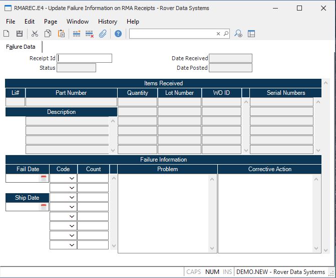 Update Failure Information on RMA Receipts (RMAREC.E4)