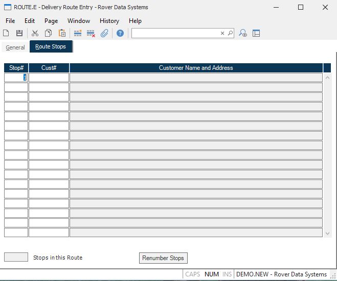 Stop Nbr The system will assign the next stop# or it can be entered or changed. To renumber the stops sequentially, use the button below.