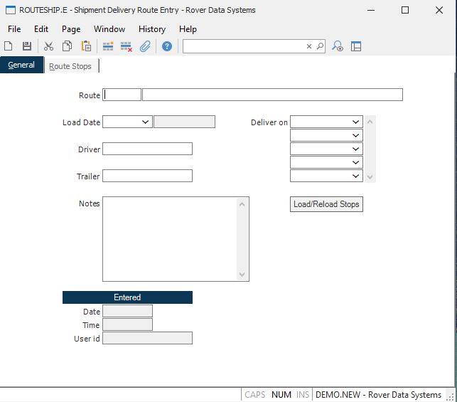 ** ** The ID for the routeship record will be system assigned using the route# and delivery date. It does not appear on the screen. The format of the record ID is ROUTE*DATE.