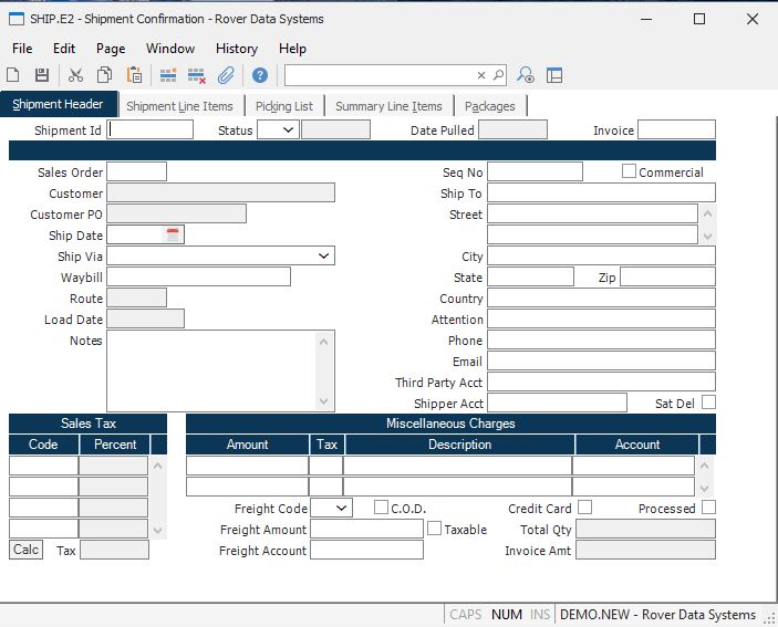 Ship Via Enter the method of shipment or carrier to be used for shipping the items. This data is loaded from the sales order, but can be changed if desired.