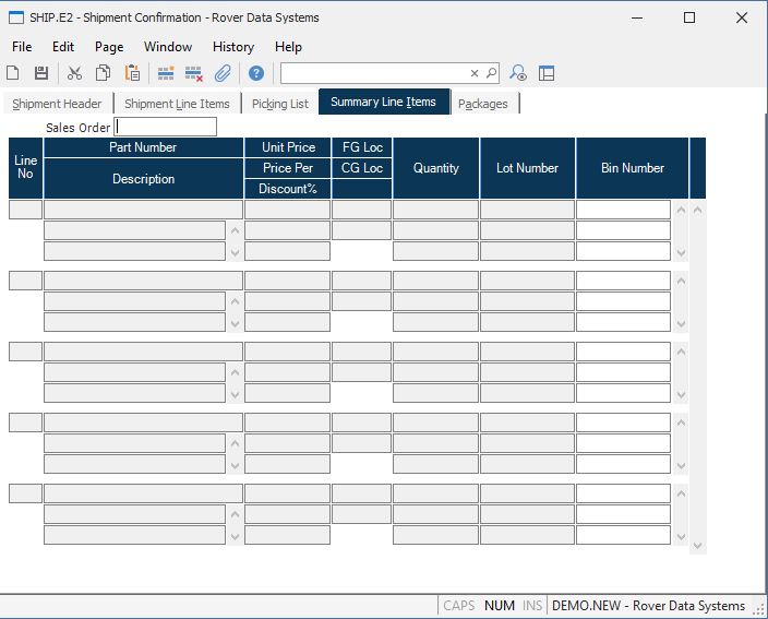 Bin Number Contains the bin number the associated quantity will be shipped from. The data on this tab is displayed for reference only and cannot be changed. Changes to this line item can be made on the Shipment Line Items tab.