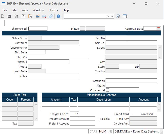 Ship Via Enter the method of shipment or carrier to be used for shipping the items. This data is loaded from the sales order, but can be changed if desired.