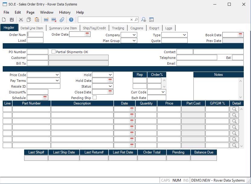 Load If you wish to create a new sales order from an existing order, enter the existing SO number here. This function can only be used with new records.