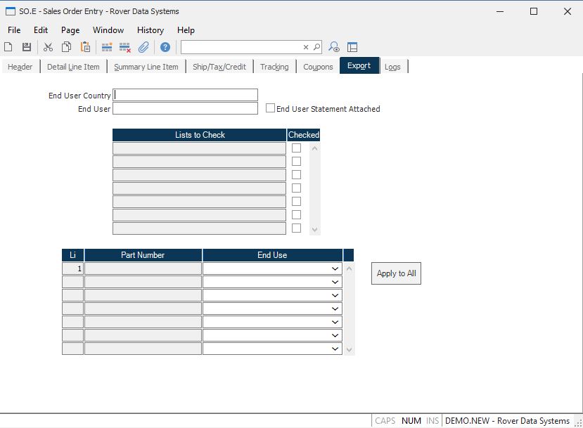 Apply End Use Press this button to apply the end use entered on the first line item to all line items.