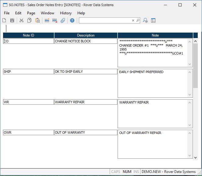Note Enter the actual text of the note which will be loaded into the sales order when the associated note ID is selected.