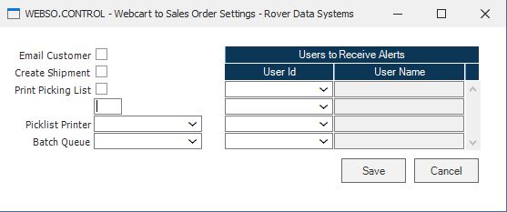 Webcart to Sales Order Settings (WEBSO.CONTROL)
