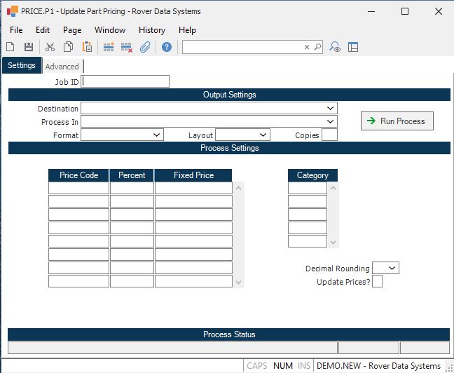 Category If you wish to restrict the price updates to a category of parts, enter that category here. Leave this field empty to update all price records.