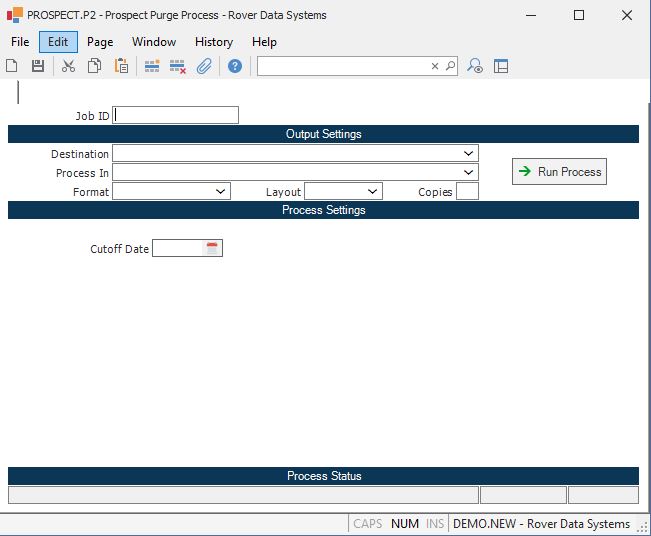 Cutoff Date Enter the date to be used as the cutoff date for purging the records. Any record whose last activity date is less than or equal to the date entered will be deleted.