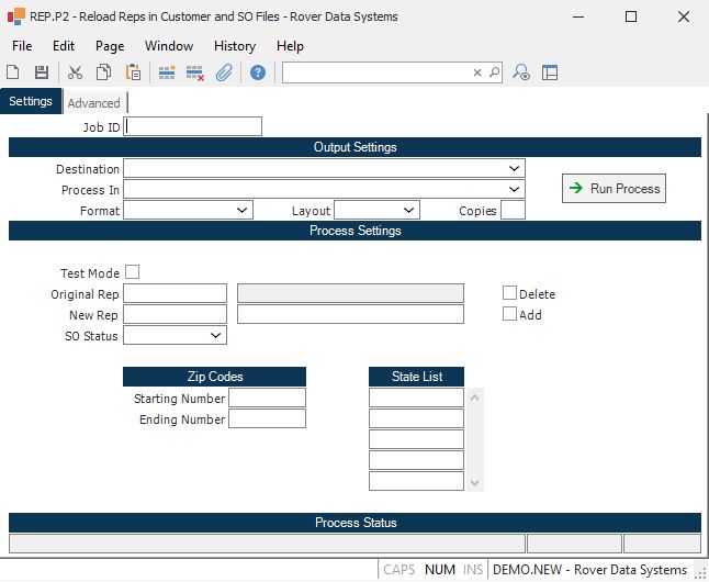 New Rep Enter the rep id that you want to replace the original rep id with. Please note that if the customer and/or sales order records contain more than one rep id, the only rep to be replaced is the rep id that is referenced in the original rep field.