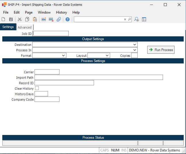 History days Enter the number of days of history that you want to keep in the import file. This field should be used if all shipments are not processed through SHIP.E2 on the same day the were done on the Fedex / UPS computer. For example, if you process a Fedex shipment on the shipper's computer and want to come back tomorrow and process SHIP.E2 , you will want the import record to be available. Leaving this field empty means that the import record will be cleared each time this procedure is run.
