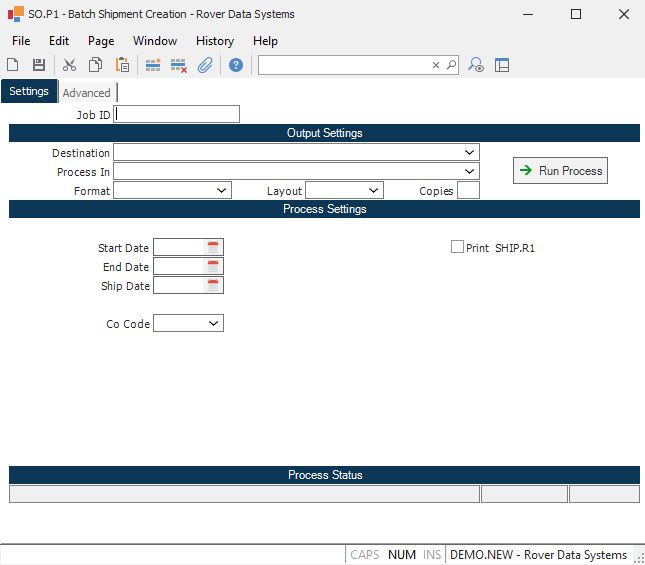 Co Code Enter the company code you wish to create shipments for. If only one company codes exists it will automatically be inserted into this procedure for you.