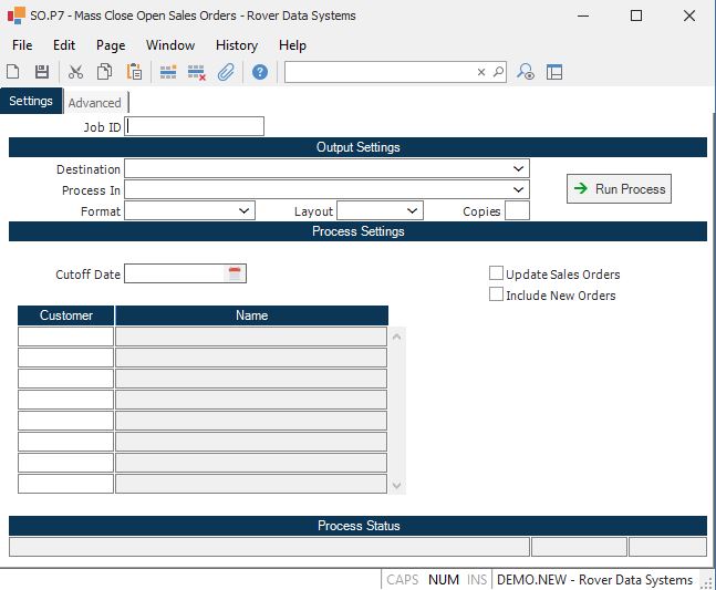 Cutoff Date Enter the cutoff date to be used in this procedure. All open sales orders with an order date less than or equal to the cutoff date will be included. This is a required field.