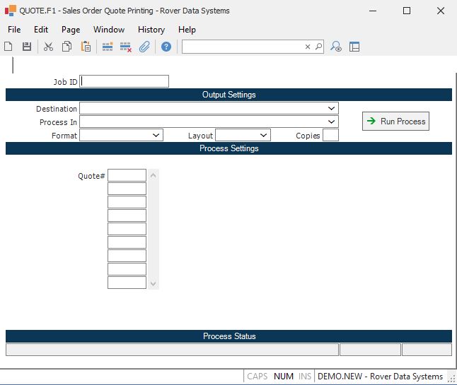 Run Process Click on the button to run the process. This performs the save function which may also be activated by clicking the save button in the tool bar or pressing the F9 key or Ctrl+S.