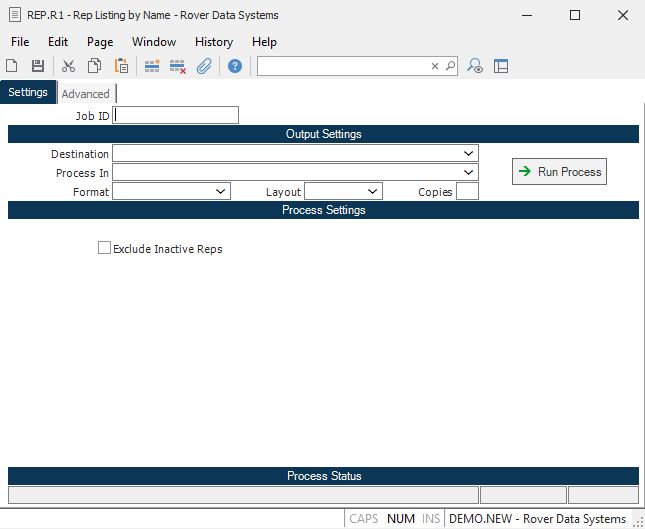 Process Select the method to be used for processing the report. Foreground is always available and must be used when output is directed to anything other than a system printer (i.e. printers spooled through the database on the host computer.) Depending on your setup there may be various batch process queues available in the list that allow you to submit the job for processing in the background or at a predefined time such as overnight. A system printer must be specified when using these queues.