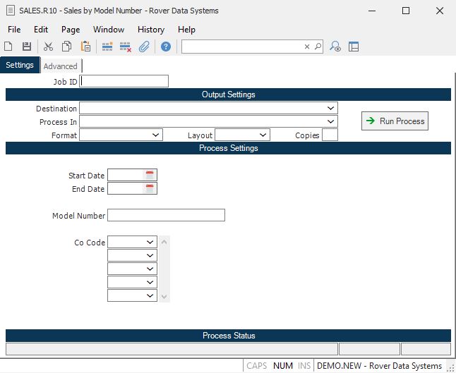 Model Number If you only want to list the sales for a particular model then enter the model number in this field. To include all model numbers leave the field blank.