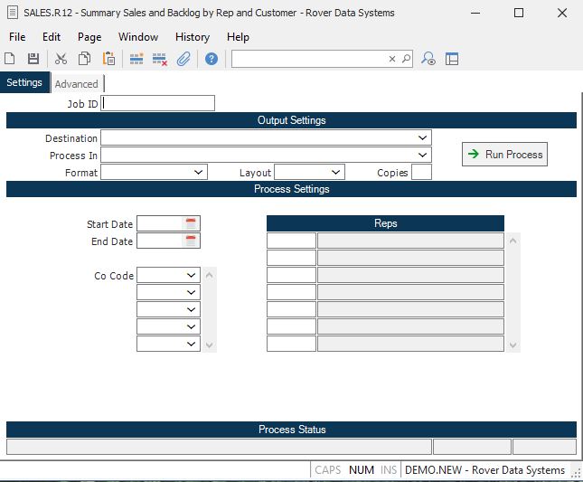 Summary Sales and Backlog by Rep and Customer (SALES.R12)