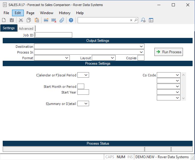 Run Process Click on the button to run the process. This performs the save function which may also be activated by clicking the save button in the tool bar or pressing the F9 key or Ctrl+S.