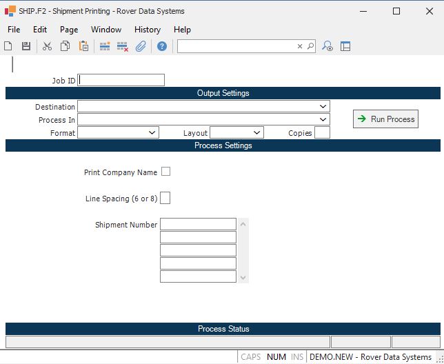 Run Process Click on the button to run the process. This performs the save function which may also be activated by clicking the save button in the tool bar or pressing the F9 key or Ctrl+S.