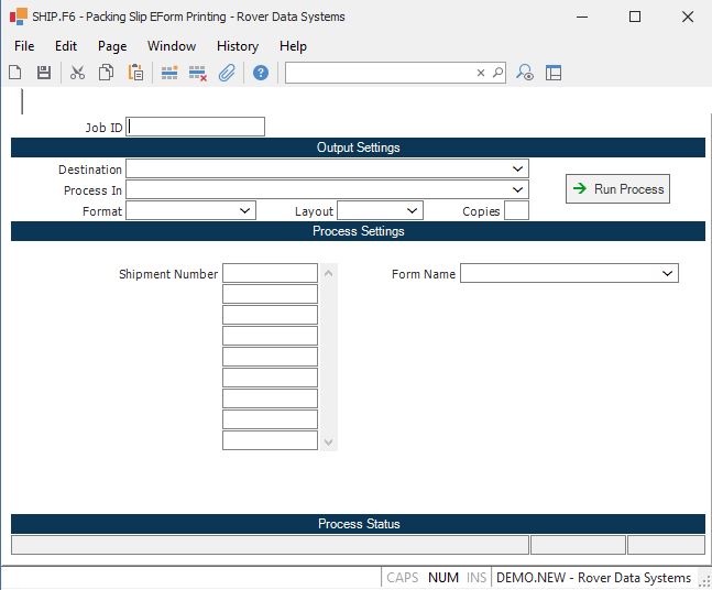 Run Process Click on the button to run the process. This performs the save function which may also be activated by clicking the save button in the tool bar or pressing the F9 key or Ctrl+S.