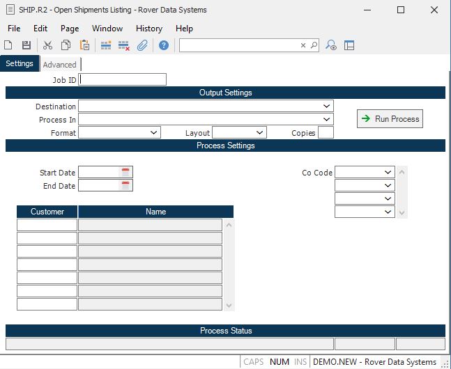 Start Date Enter the starting date to be used in this report. If this field is not left blank, all open shippers with a date >= to this date will be selected.