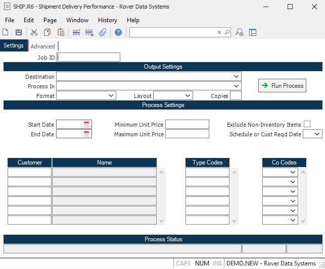 Scheduled or Cust Reqd Date Enter an "S" to base delivery performance on the SO scheduled date. Enter an "R" to base it on the SO customer required date. The default is "S". If "R" is chosen, and no customer reqd date is on the order, then schedule date is used.