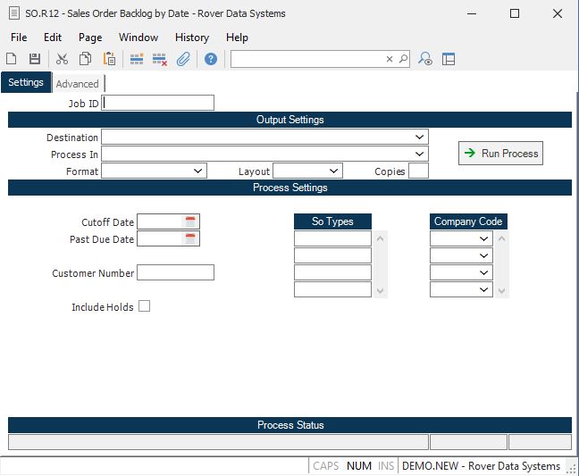 Cutoff Date Enter the cutoff date through which the backlog will be displayed. Any sales order schedule dates after this date will not be included on the report.