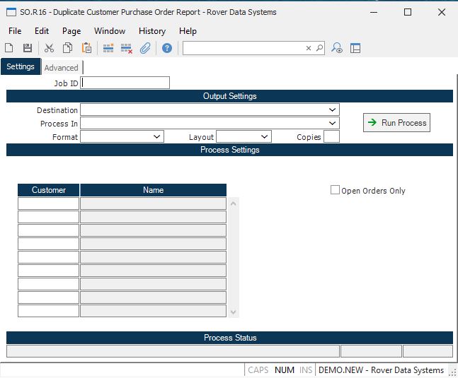 Open Order Check this box if you only wish to list duplicate purchase orders for open sales orders. If this box is not checked, all sales orders will be included regardless of the status of the sales order.