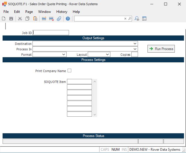SOQUOTE Item Enter all of the items you want to have printed.