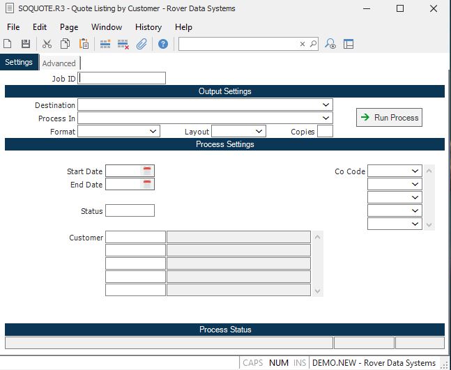 Run Process Click on the button to run the process. This performs the save function which may also be activated by clicking the save button in the tool bar or pressing the F9 key or Ctrl+S.
