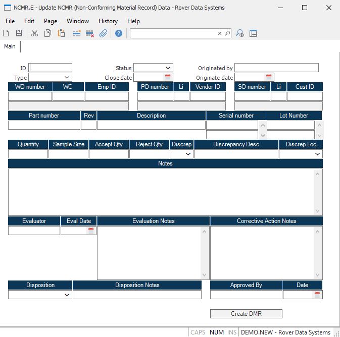 Status Select the status code for this NCMR record. These codes are defined in the NCMR.CONTROL screen.