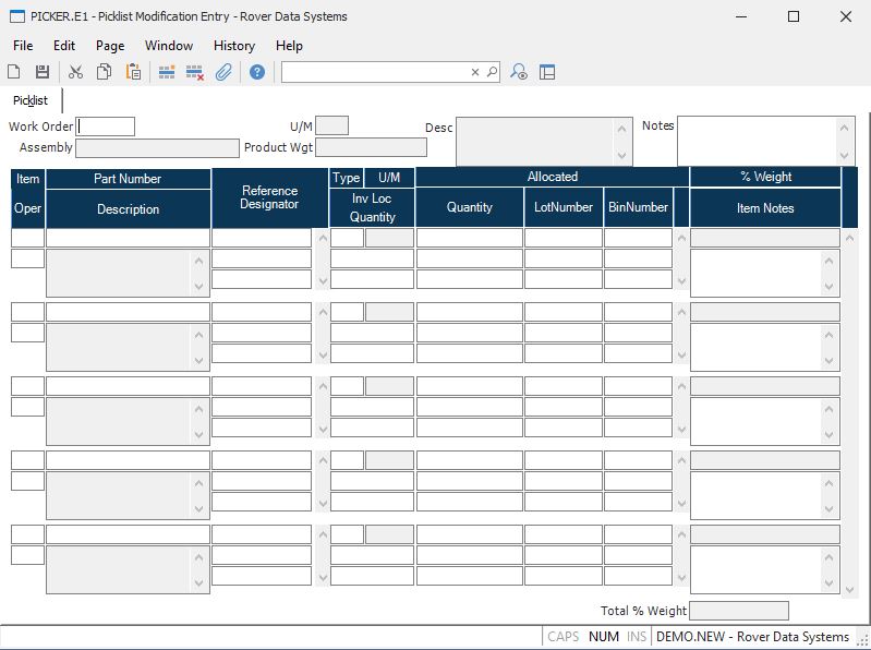 Picklist Modification Entry (PICKER.E1)