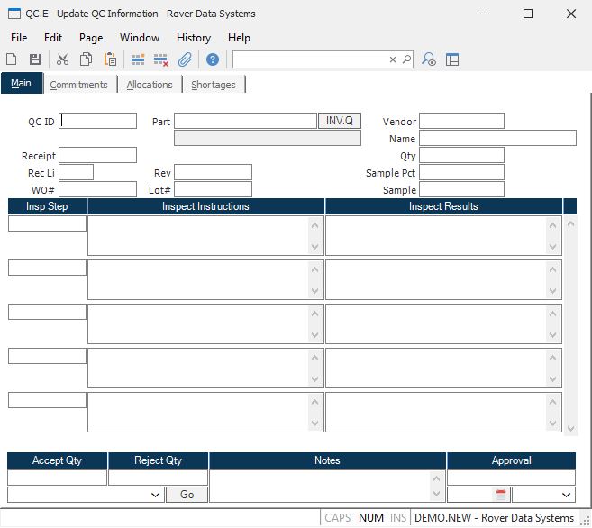 ID Enter the QC number you wish to view/update. Leave this field empty to assign the next sequential number.