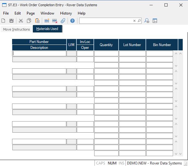Work Order Completion Entry (ST.E3)