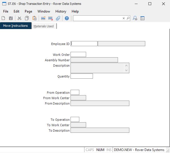 To Oper Enter the operation to which the items were moved. The operation number must match one of the operations listed in the routing for the work order.