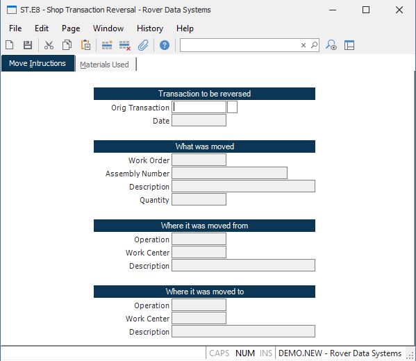 To Description Contains the description of the to operation for the work order entered. This data is displayed for information only and may not be changed.